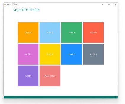 Mit Scan2PDF Profile steht Ihnen eine neue Anwendung zur Verfügung, die sämtliche in Scan2PDF erstellten Profile übersichtlich in Form von Kacheln darstellt. Durch Antippen einer Kachel wird Scan2PDF direkt mit dem entsprechenden Profil gestartet – eine besonders komfortable Lösung für die Nutzung auf Touchscreens.