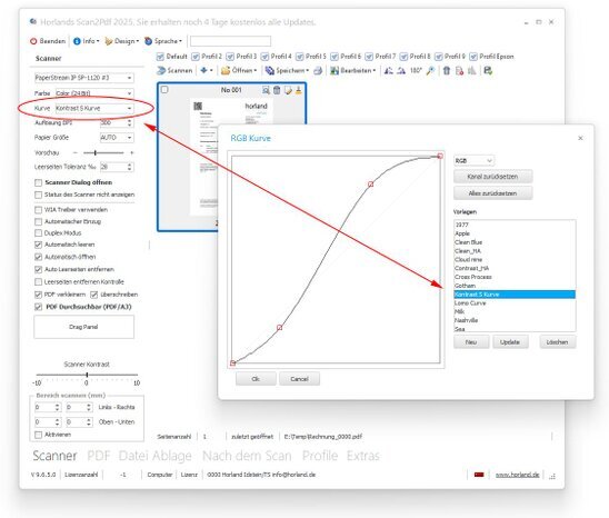 Individuell angepasste Gradationskurven lassen sich bereits während des Scanvorgangs anwenden, um beispielsweise den Kontrast zu optimieren oder Farbabweichungen zu korrigieren.
