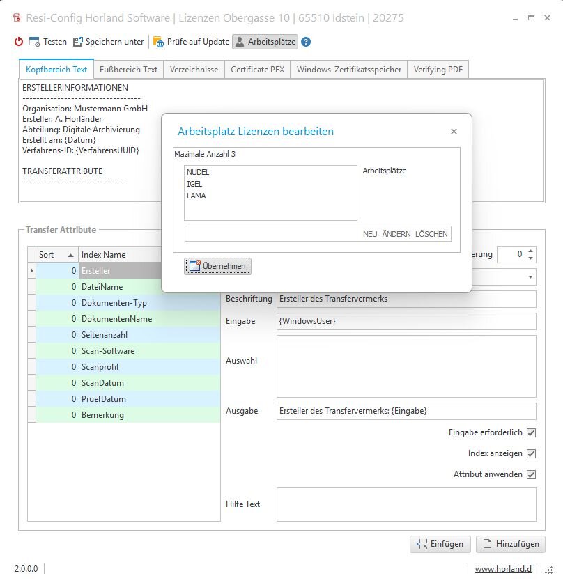 Für Arbeitsplatzlizenzen ist es erforderlich in ResiScan Config die Hostnamen der Arbeitsplätze anzugeben.